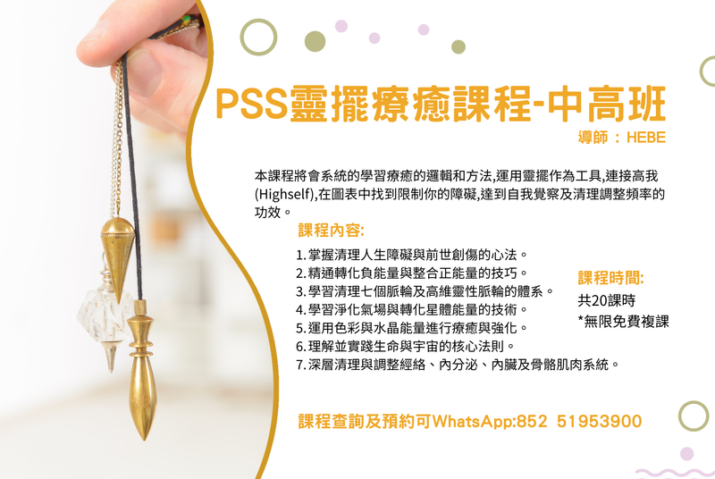 HK$8,000.00 或者 靈擺課程-中+高連報優惠